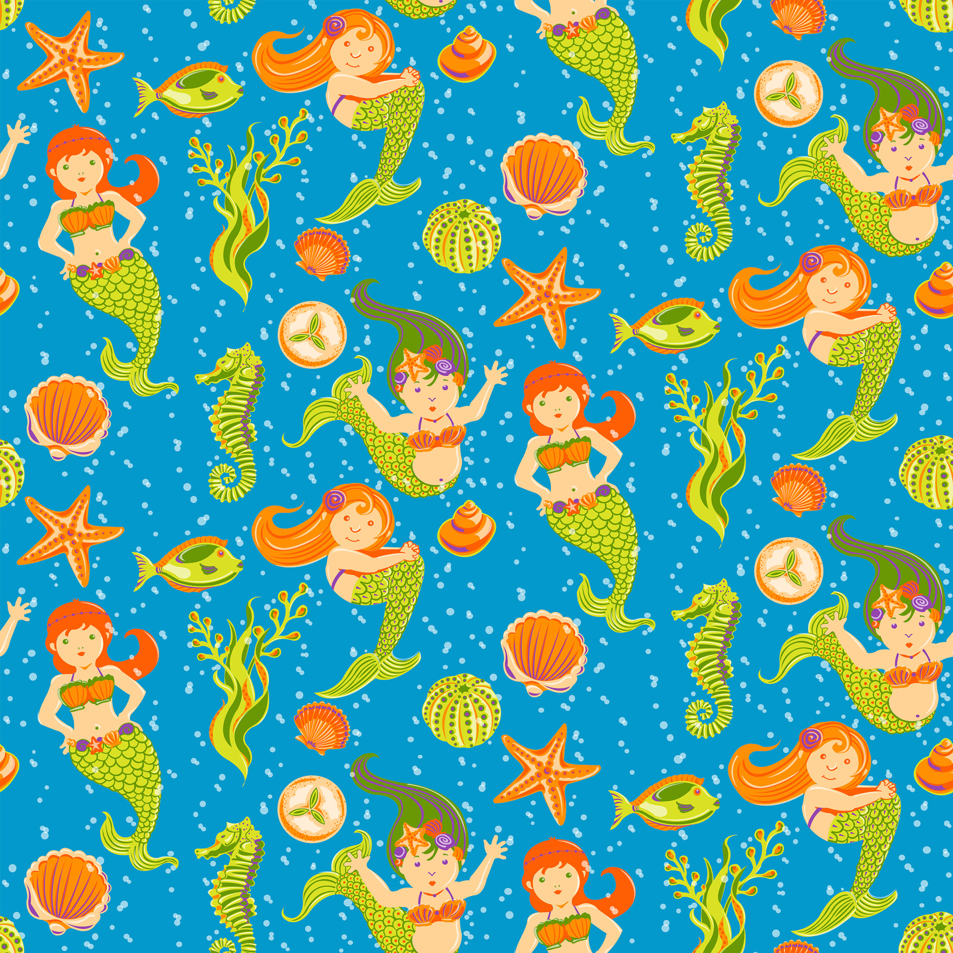 fabric and wrapping paper design. Mermaids are having fun in the ocean!