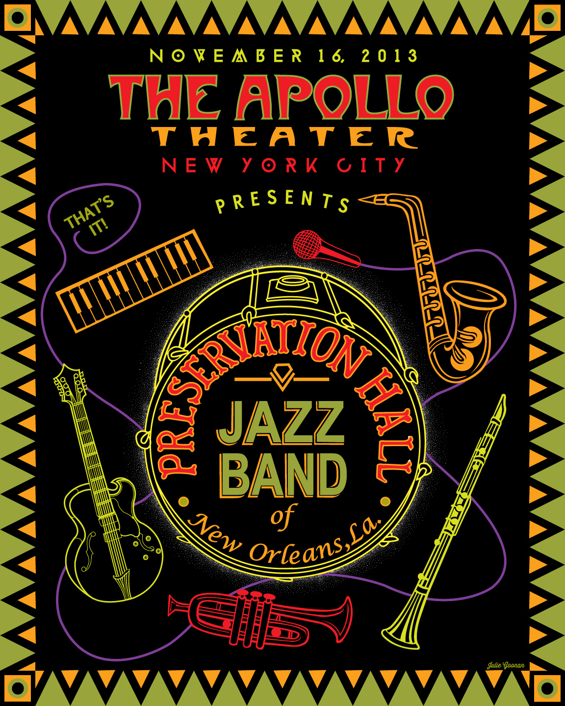 My entry in a contest - poster design for the Preservation Hall Jazz Band at the Apollo Theater NYC in November