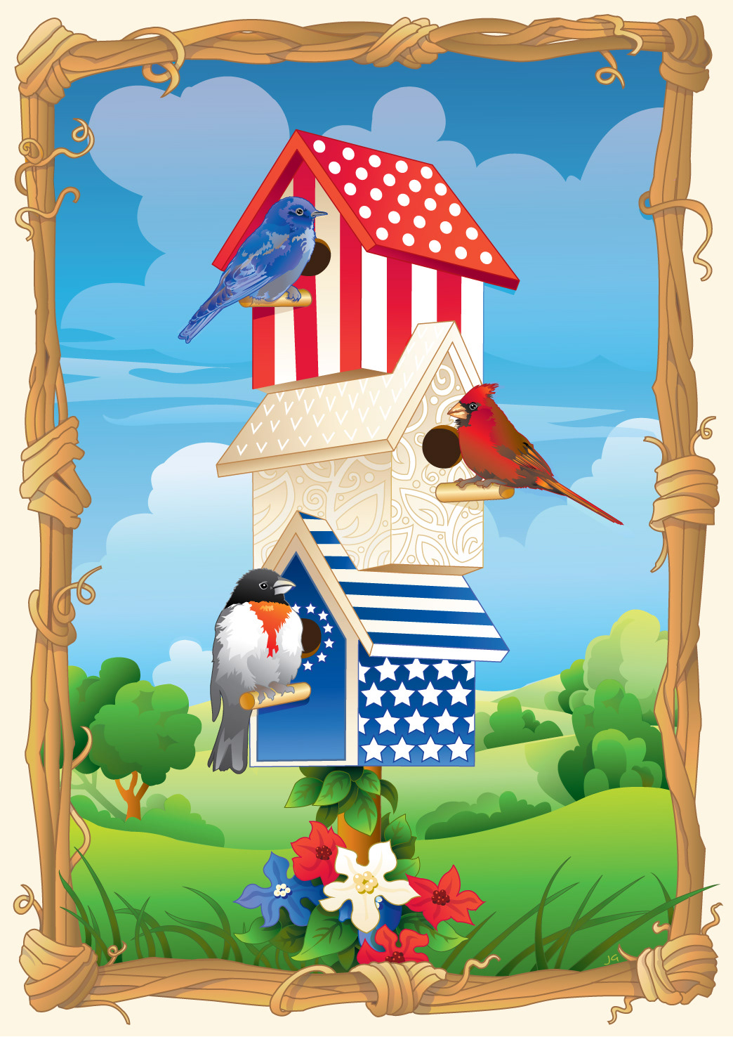 Art done for Licensing products. Currently Licensed for Garden Flags- Two Flag Group Fall Birdhouse available for Licensing thru art licensing.com. Also below this has been made into a jigsaw puzzle- Sun's Out Co.